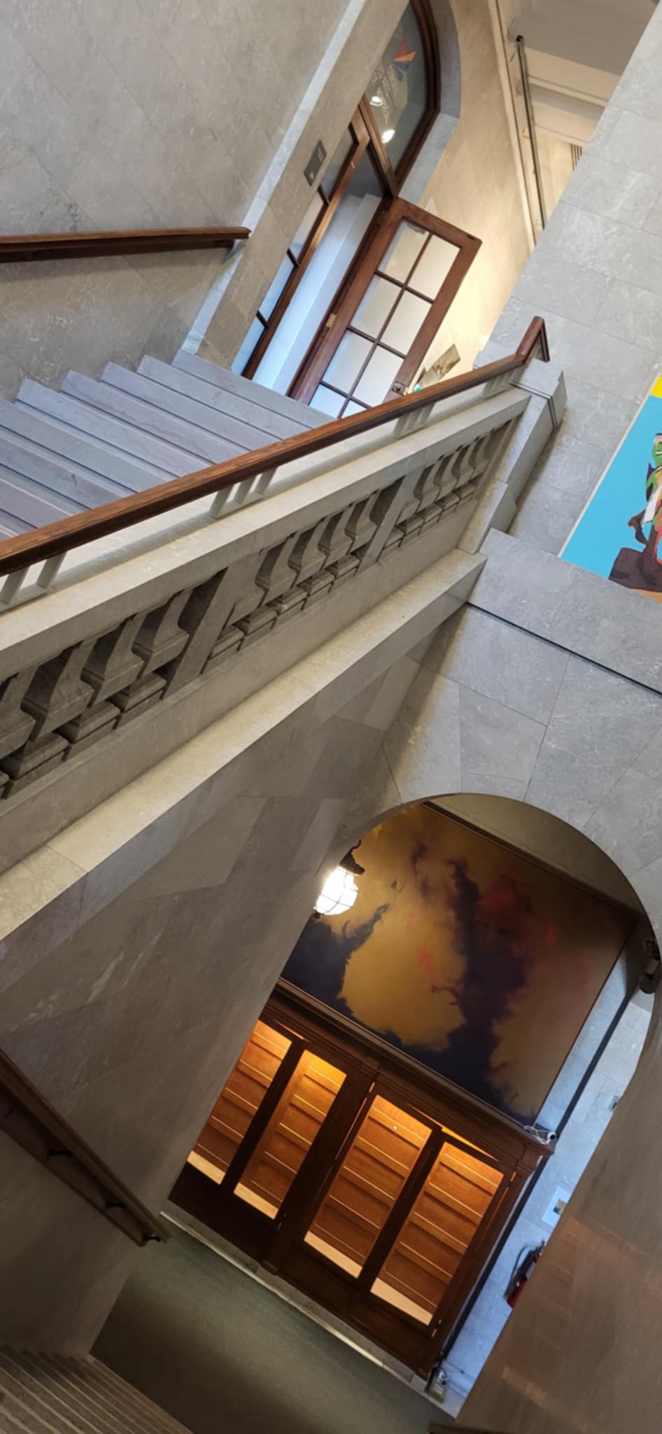 En montant le gros set de marches, j’étais un peu intimidée. J’étais seule et ne connaissais pas du tout les lieux. Mais partout où je posais les yeux, il y avait une œuvre d’art PARTOUT : allant d’une chaise qui a connu de meilleurs jours, à un miroir cassé, et autres. Le tout dans un vieux bâtiment bien conservé.